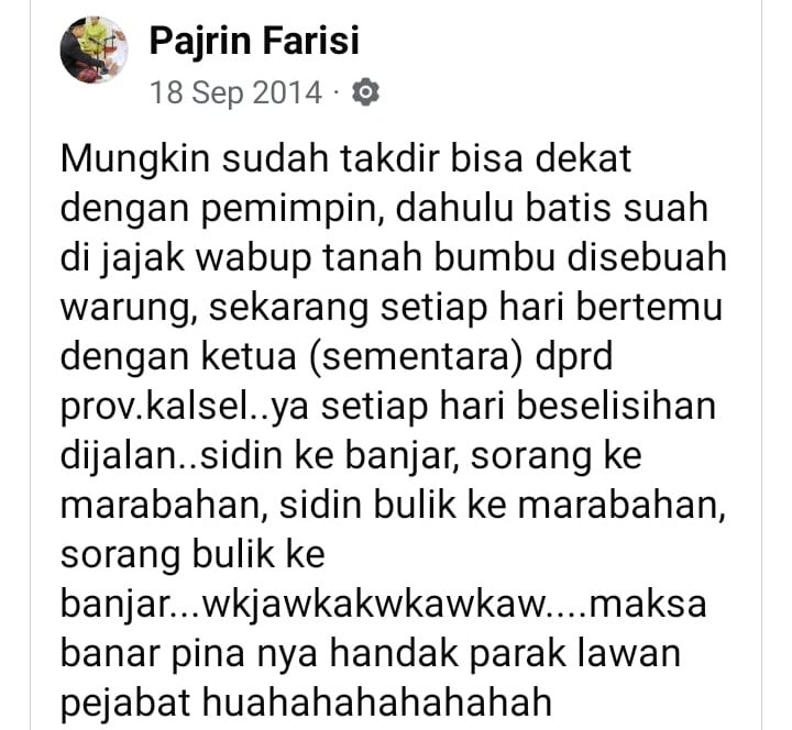 Kedekatan saya dengan beliau jelas adalah ketika beliau menjabat sebagai Ketua DPRD Provinsi Kalimantan Selatan hasil Pemilu Legislatif 2014-2019, karena beliau dari Marabahan menuju Banjarmasin, sedangkan saya dari Banjarmasin menuju Marabahan, maka hampir setiap hari saya berpapasan dengan beliau. Ketika berpapasan itulah terjadi yang namanya “kedekatan” alias mobilnya sedang dekat walau beda arah wakwkawkakwaw. Saya tau beliau, dan beliau jelas tidak tau saya wkawkawkakw.