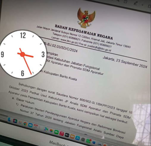 Untuk itu sesuai dengan Surat Kepala Kantor Regional VIII BKN Banjarbaru Nomor 600/B-BJ.01/SD/KR.VIII/2023 Tanggal 20 September 2023 perihal Percepatan pengusulan perubahan Nomenklatur jabatan fungsional Kepegawaian perlu untuk segera di serahkan sebelum tanggal batas akhir yaitu 31 Oktober 2023.